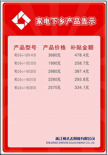 神太太陽能下鄉(xiāng)專賣店形象告示、宣傳及儀表圖示