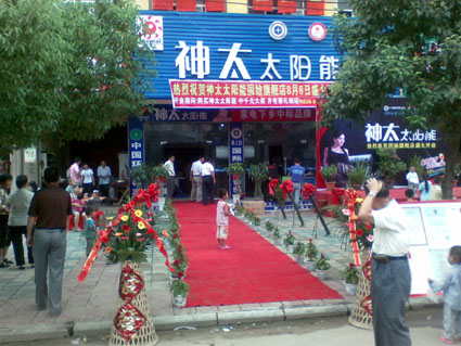 河南南召神太太陽能專賣店在當(dāng)?shù)氐囊?guī)模和形象都是名列前矛的,開業(yè)儀式舉行比較隆重.開業(yè)當(dāng)天就銷售了20幾臺(tái)機(jī)器,為神太產(chǎn)品在當(dāng)?shù)厥袌?chǎng)打開銷路開了個(gè)好頭.