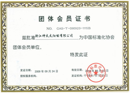 2009年9月24日浙江神太太陽能有限公司正式加入中國標(biāo)準(zhǔn)化協(xié)會,成為標(biāo)準(zhǔn)化協(xié)會的會員單位,浙江神太的產(chǎn)品標(biāo)準(zhǔn)化建設(shè)一直為公司生產(chǎn)經(jīng)營的重心工作。 本次加入標(biāo)準(zhǔn)化協(xié)會的最主要目的,也是為了進(jìn)一步提升我公司標(biāo)