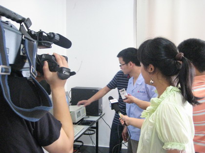 2009年7月2日上午,海寧市質(zhì)監(jiān)局、質(zhì)檢執(zhí)法大隊、海寧電視臺等領(lǐng)導(dǎo)一行十多人前來我司,就關(guān)于“家電下鄉(xiāng)”前期工作的開展情況進行調(diào)研與現(xiàn)場采訪報道,并對相關(guān)先進的實驗方法與儀器操作等進行了現(xiàn)場實踐指導(dǎo)。 “