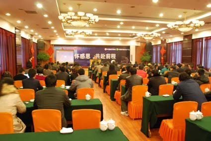2009年1月6號,浙江神太太陽能有限公司在海寧市的海寧賓館,隆重舉行2008年神太公司年會.從全國各地趕來的100多名優(yōu)秀經(jīng)銷商參加了這次會議.大會以"心懷感恩,共赴前程"為主題,全面回顧了神太公司這幾年的發(fā)展歷