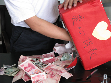 工作人員在統(tǒng)計(jì)愛(ài)心捐款