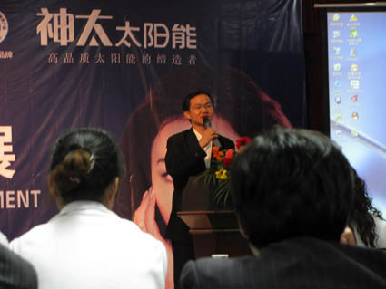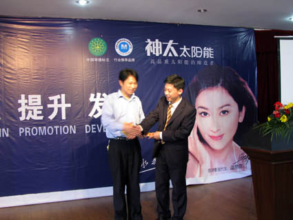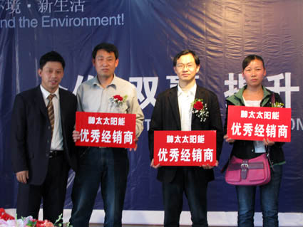 下午,由各地優(yōu)秀經(jīng)銷商代表上臺發(fā)言,上臺的各位經(jīng)銷商結(jié)合自己做神太太陽能多年來的切身感受,談了對神太產(chǎn)品的欣賞之處,覺得做神太這么多年來抵擋了很多其他同行產(chǎn)品的誘惑,一直堅(jiān)持做下來沒有后悔。尤其是來自咸寧的朱經(jīng)理,他談及到自己10多年來與神太合作的理由:1.神太是一個自立自強(qiáng)的自主品牌,她從誕生至今一直堅(jiān)持走自己的品牌之路,不傍名牌。2.神太的產(chǎn)品品質(zhì)很好,無論在做工的精細(xì)程度上,還是在企業(yè)整體的VI設(shè)計(jì)上都具有大型企業(yè)的風(fēng)范,買起來有買點(diǎn),買出去很放心。3.神太公司這些年一直在產(chǎn)品的革新上做得很好,幾乎每年都有新產(chǎn)品推出,并且都受到了用戶的歡迎。所以,大家對神太公司都報(bào)有很大的期望,覺得做神太將來肯定會贏利。但同時大家也對公司提出了希望和要求:希望神太公司能在市場促銷和廣告宣傳上多投入一些,這樣可以緩解他們在市場上的壓力。