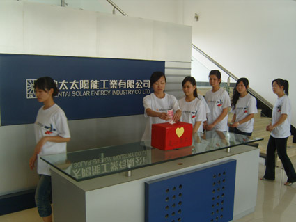 今天下午,在公司總經(jīng)理俞海強(qiáng)先生的倡議下,公司全體人員為災(zāi)區(qū)獻(xiàn)上自己的愛心。很多員工早早地來到公司的捐款現(xiàn)場,默默地向捐款箱投下了自己的一份心意,漸漸的捐款的員工排起了長長的隊(duì)伍,在“愛的奉獻(xiàn)”歌曲為背景音樂下,現(xiàn)場的捐贈氣氛感人至深,合計(jì)捐得款項(xiàng)24511元。 !
