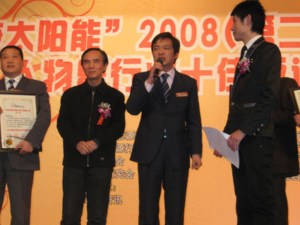 新年伊始,在剛剛結(jié)束的“第二屆2008中國中國太陽能行業(yè)經(jīng)濟(jì)年度人物暨行業(yè)十佳評選活動頒獎盛典”上,神太公司總經(jīng)理俞海強(qiáng)先生榮獲“2008中國太陽能行業(yè)十佳新銳人物”,在除了神太在出口驕人業(yè)績的同時,在開拓國內(nèi)市場上后神太精彩的畫面上又添上了輝煌驕傲的一頁。