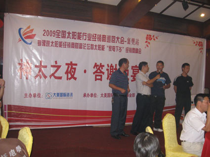 當(dāng)天晚上浙江神太太陽能公司,為感謝經(jīng)銷商朋友不辭辛苦從四面八方趕過來,特設(shè)置豐盛的晚宴款待所有參會的經(jīng)銷商朋友,晚宴現(xiàn)場還舉行了精彩的抽獎活動,獎品價(jià)值高達(dá)近萬元。整個活動結(jié)束后神太公司與許多與會的經(jīng)銷商達(dá)成合作意向,現(xiàn)有部分經(jīng)銷商已經(jīng)與神太公司正式發(fā)生業(yè)務(wù)關(guān)系!