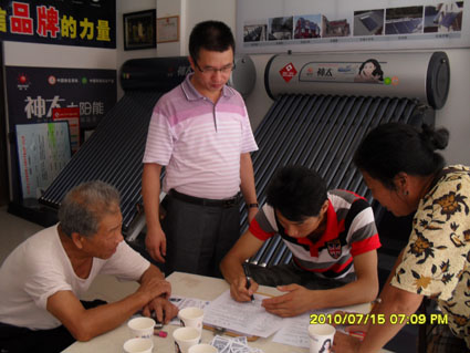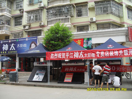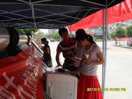 近日,湖南省長沙辦事處在炎炎夏季、太陽能市場進(jìn)入淡季時(shí)期,為了使公司新型產(chǎn)品快速導(dǎo)入市場,在湖南省多數(shù)重點(diǎn)市場舉行了一系列大型促銷活動(dòng),在平江市場短短的兩天時(shí)間就銷售產(chǎn)品60多臺(tái)產(chǎn)品,在天氣炎熱的夏天,雖然活動(dòng)現(xiàn)場咨詢的客戶不是很多,但這樣的天氣下,既然來咨詢的客戶,都是有著很強(qiáng)購買意向的。辦事處工作人員不辭辛苦,為此次活動(dòng)付出了很多汗水,在市場如此疲軟的情況下,也取得了一份不錯(cuò)成績。接下來,湖南辦事處還將開展更多的相關(guān)活動(dòng)!