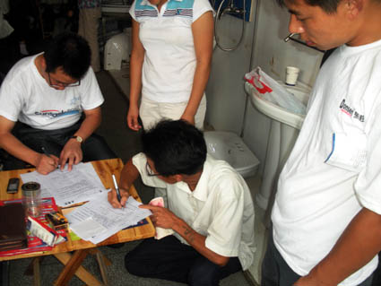 湖南辦事處嚴(yán)經(jīng)理忙著給客戶辦理購機(jī)手續(xù)
