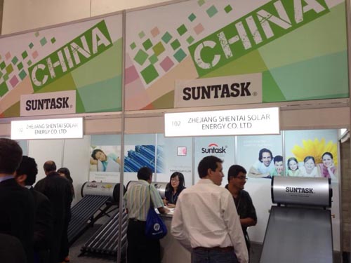 10月24日-26日期間,神太太陽能外貿(mào)團(tuán)隊(duì)在墨西哥國際綠色能源展亮相,此次參展樣品有SPH,A9-H, ST等一系列承壓太陽能集熱器,公司外貿(mào)人員為新客戶講解各款區(qū)別,客戶對(duì)產(chǎn)品的多樣性甚是滿意。同時(shí)參展的神太公司全新設(shè)計(jì)的SPH(新款平板一體機(jī))也吸引了廣大客商的駐足咨詢,客戶紛紛對(duì)神太的品牌、產(chǎn)品工藝、營銷策略、市場推廣、售后服務(wù)等方面都給予了肯定。神太公司秉承給每一個(gè)家庭提供健康熱水的理念服務(wù)全球,共創(chuàng)美好環(huán)境。